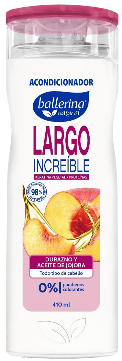 BALLERINA ACONDICIONADOR LARGO INCREIBLE DURAZNO Y JOJOBA SIN SAL 410 ML