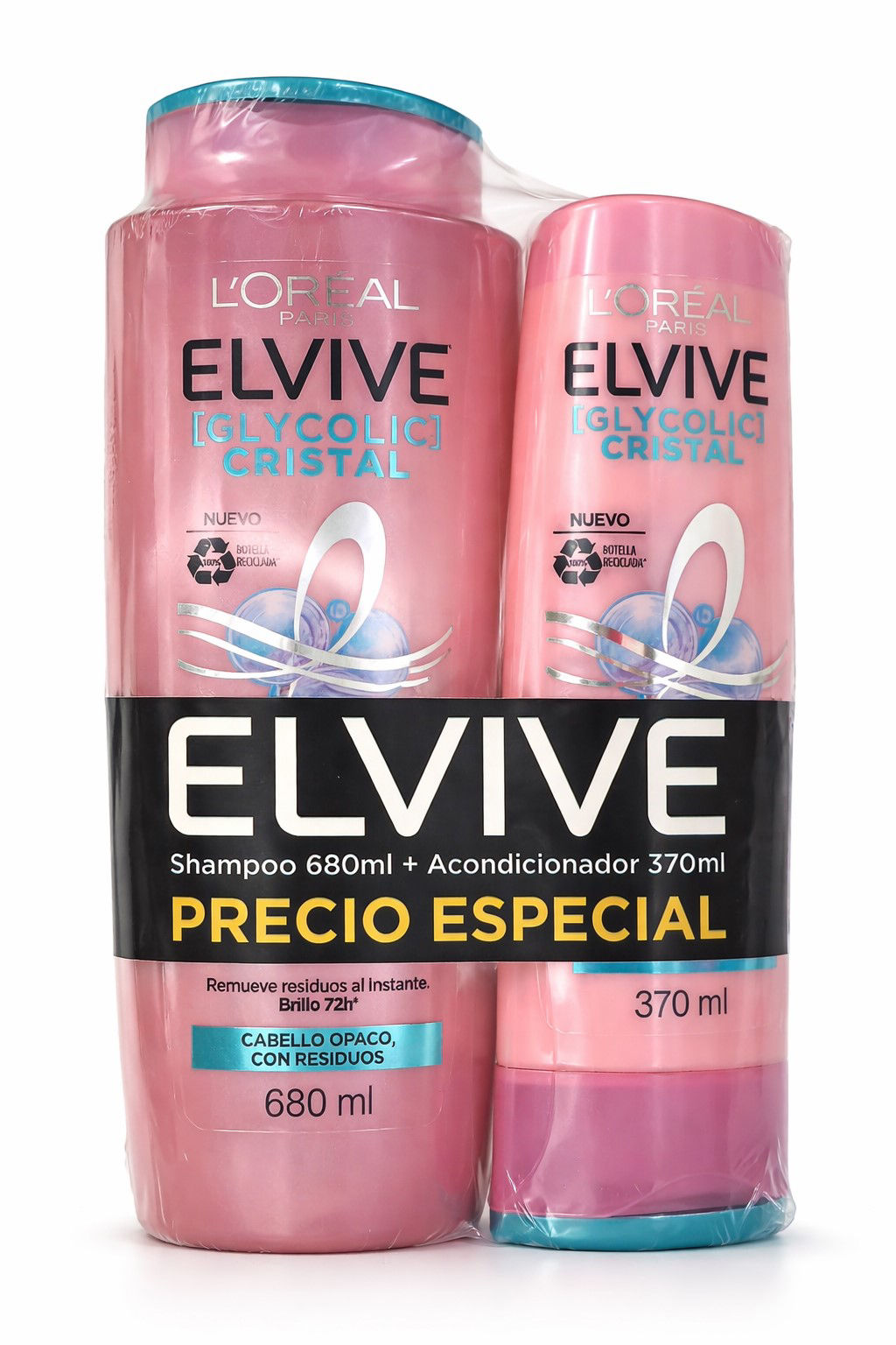 ELVIVEGLYCOLIC CRISTAL SHAMPOO 680 ML + ACONDICIONADOR 370 ML