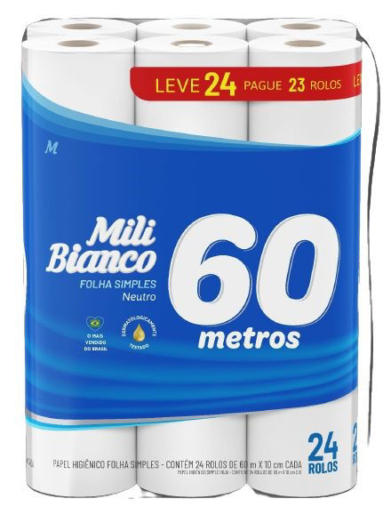 MILI PAPEL HIGIENICO HOJA SIMPLE 60 MTS X 24 ROLLOS