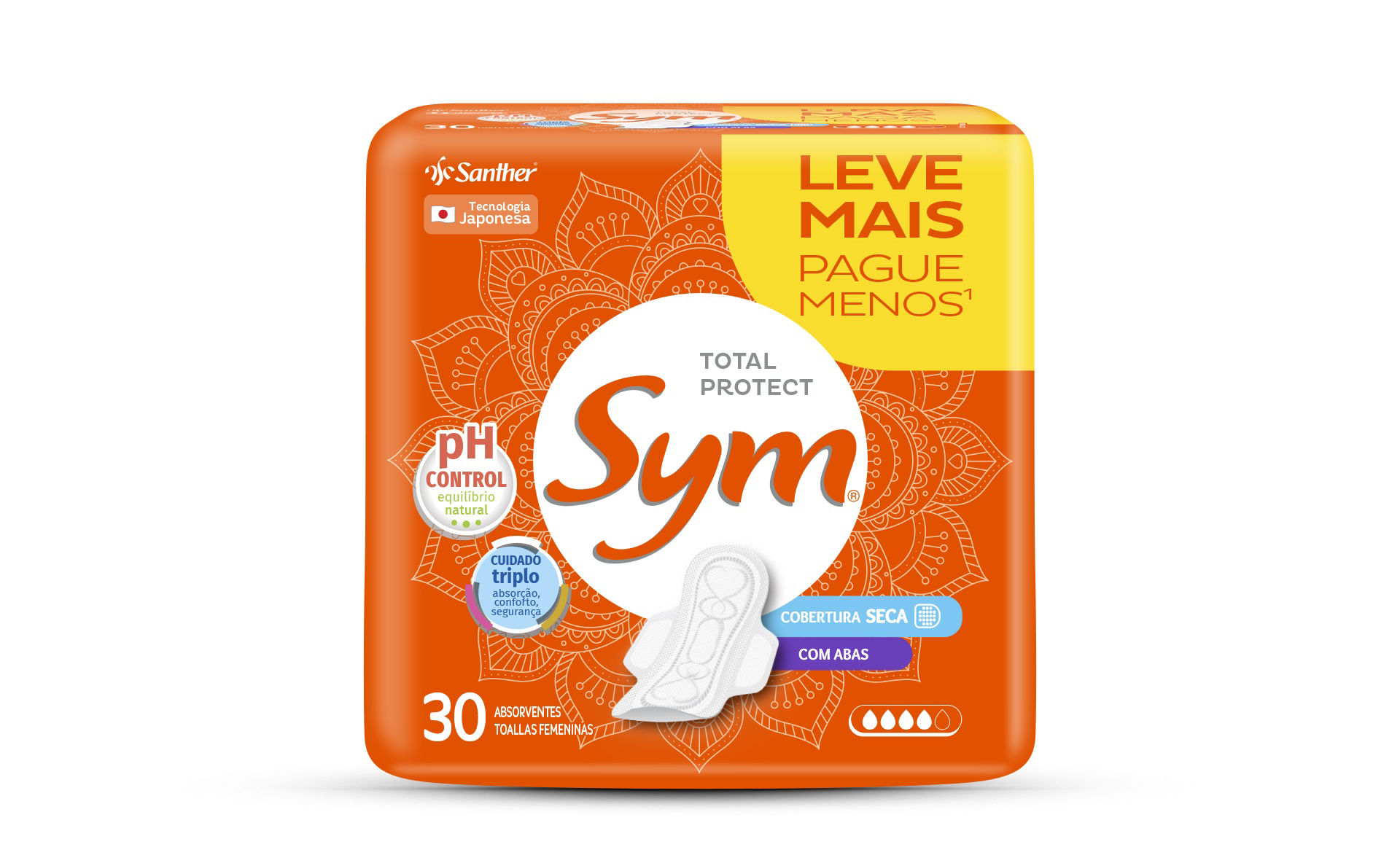 SYM TOALLAS ABSORBENTES SECA X 30 NARANJA